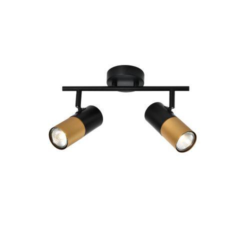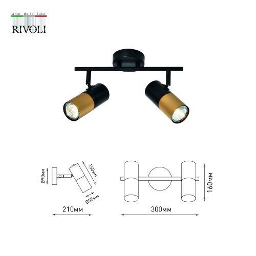Спот поворотный Rivoli Belladonna под 2 лампы эффектно смотрится в современных интерьерах. Это отличный вариант для организации дополнительного освещения в спальне, в гостиной, в кабинете, на кухне. Двухцветные (чёрный + золотой) плафоны расположены на лаконичной металлической рейке чёрного цвета.