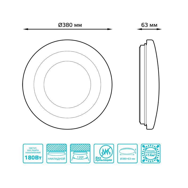 Светильник светодиодный 380х63 24Вт 4000К IP20 1560Лм круг (динозавр) настенно-потолочный накладной GAUSS 941411224D